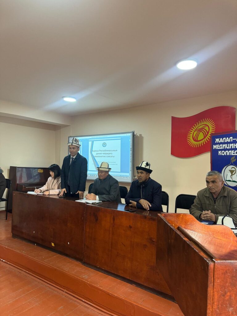 Бүгүн, ЖАМКда 2023-2027-жылдары Кыргыз Республикасынын Министрлер Кабинетинин «Экстремизмге жана терроризмге каршы аракеттенүү» программасын ишке ашыруу максатында Жалал-Абад облусунун мусулмандар казысы Нематулла ажы Жээнбеков Пусурманкулович, Жалал-Абад облустук Дин комиссиясынын өкүлү Нурбек Кайсарбаев, УКМК кызматкери Болот Алакуновдор студенттерге «Экстремизмге жана терроризмге каршы аракеттенүү» боюнча түшүндүрүү иштерин жүргүзүштү. Аталган программа диний агитация жана экстремизмге каршы күрөшүүнүн маанисин түшүндүрүү максатын көздөдү. Студенттерге динге болгон көз караштарын аныктоо үчүн суроолор берилди жана алар өздөрүн кызыктырган маселелер боюнча кеңири маалымат алышты. Иш-чаранын жүрүшүндө, катышуучуларга диний сабырдуулук, өлкөдө тынчтыкты сактоо жана радикалдык идеологияларга каршы турууга чакыруулар жасалды.
