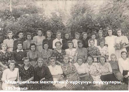 тейлеп турган. Окуу жайдын врач мугалимдери поликлиника кесиби боюнча эмгектенип, опыты базы катары колдонушкан.